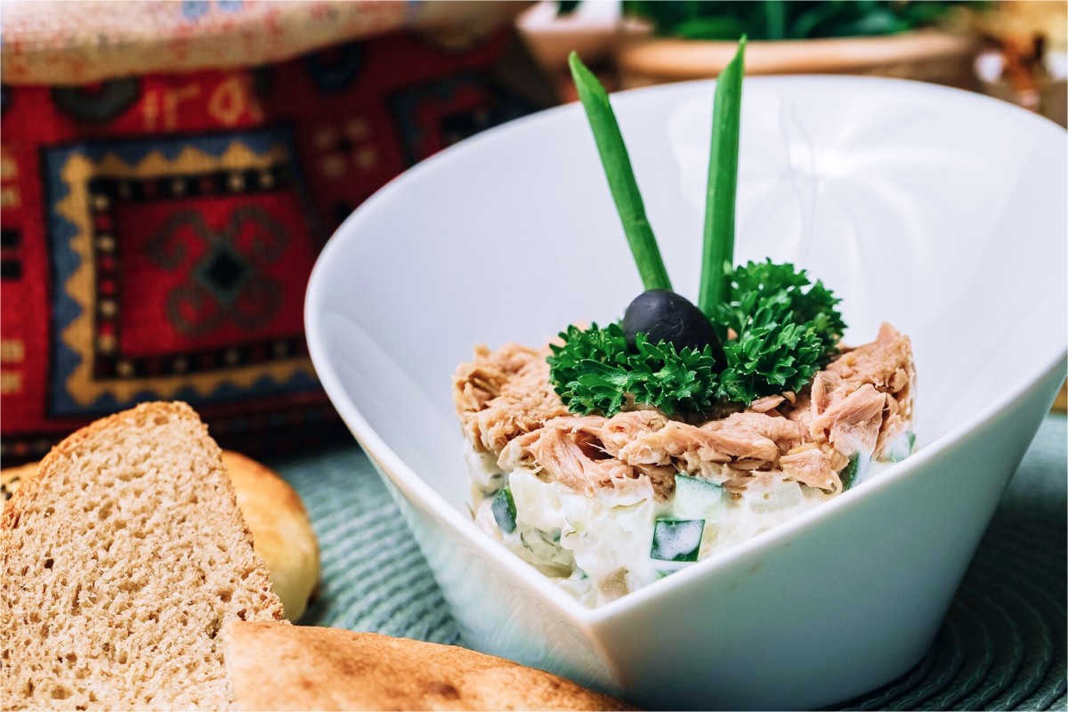 Пошаговый рецепт салата из тунца и огурцов.